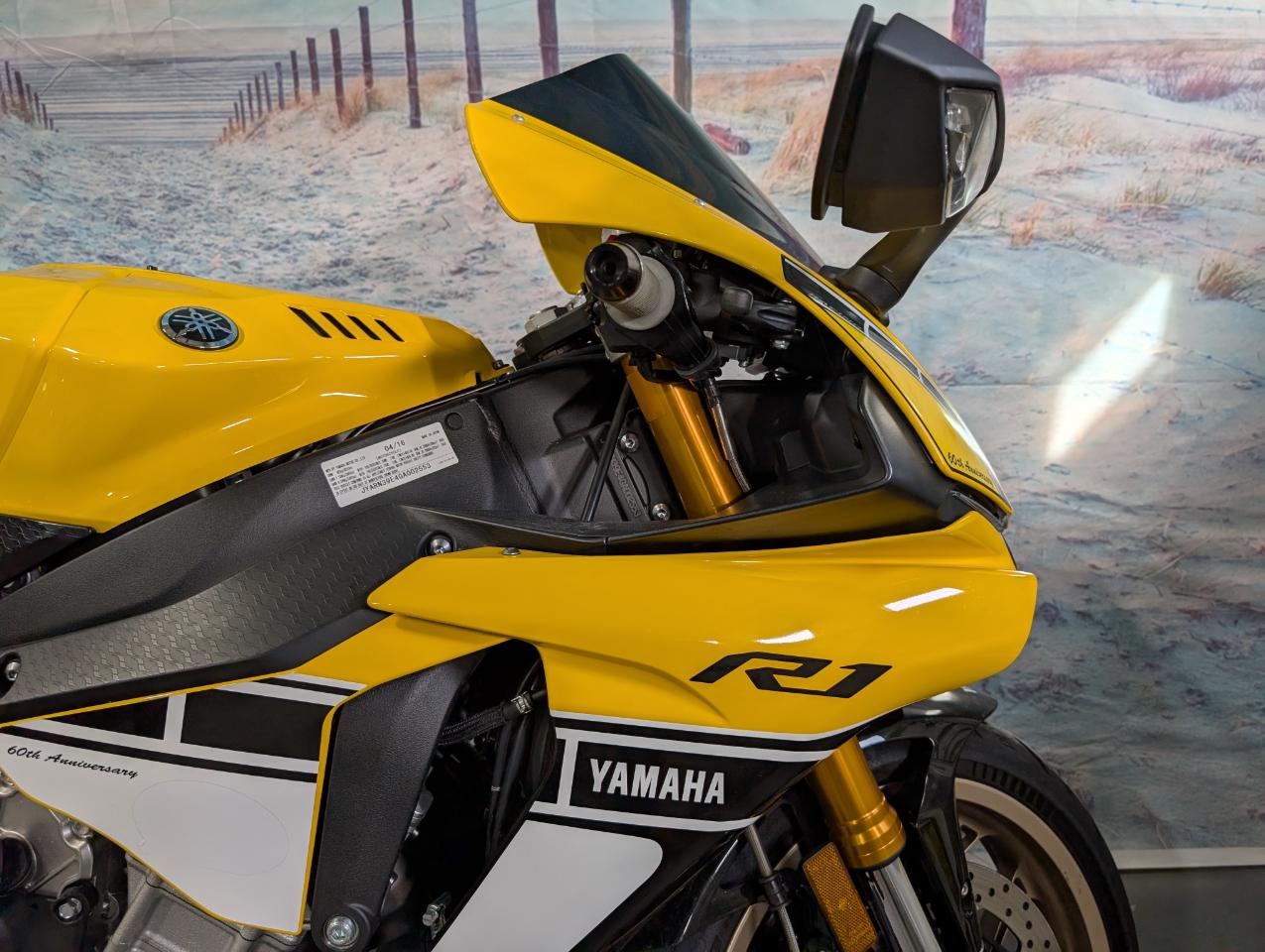 Experience race-bred performance with this 2016 Yamaha YZF-R1, a legendary bike engineered straight from MotoGP technology. With its aggressive styling, advanced electronics, and breathtaking power, the R1 delivers an unmatched riding experience for serious sportbike enthusiasts. 998cc crossplane inline-4 engine Advanced traction control, slide control and ride modes Quick shifter for clutch-less upshifts Lightweight aluminum Deltabox frame Powerful Brembo brakes Iconic R1 styling and exhaust It's the perfect bike for riders looking for top-tier performance on the street or track.